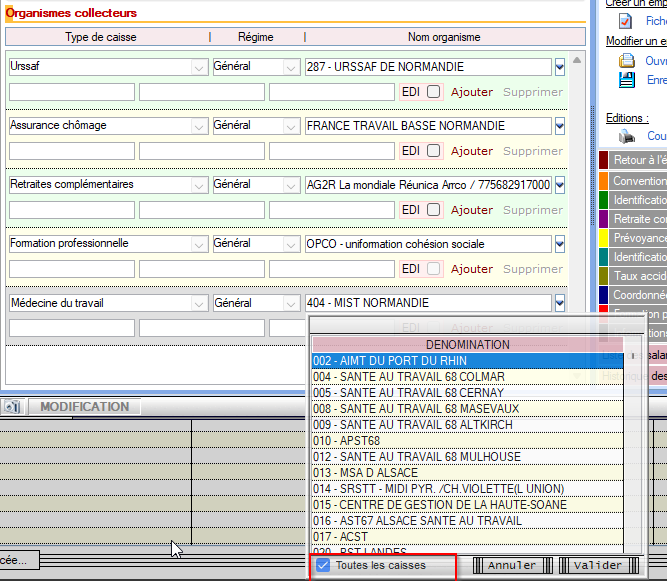 Afin de rechercher un centre SPST, une liste déroulante vous est proposée. il convient de cocher sur le bouton « Toutes les caisses « :